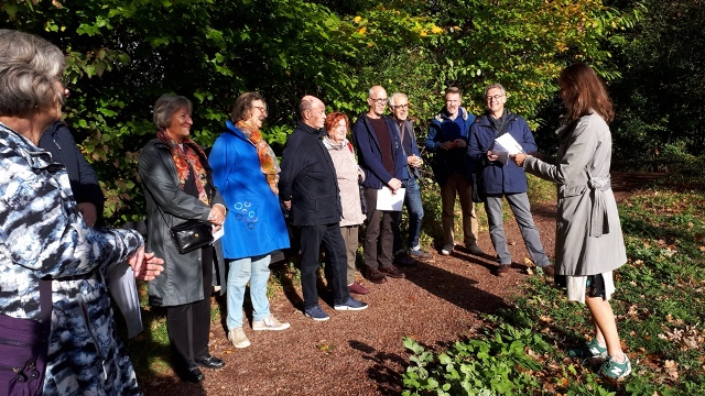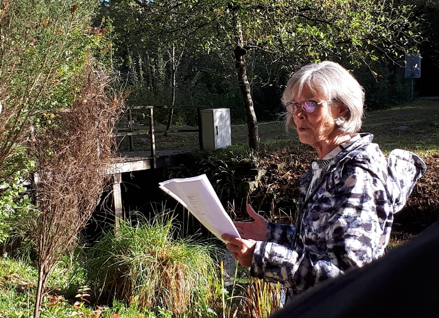 De poëziemiddag in Heemtuin op zaterdag 27 oktober was bijzonder geslaagd , mede door het onverwachte, mooie weer. Zeven dichters uit Leiden en Leiderdorp presenteerden ter plekke de gedichten die ze speciaal bij de kunstwerken in de Heemtuin hebben gemaakt.