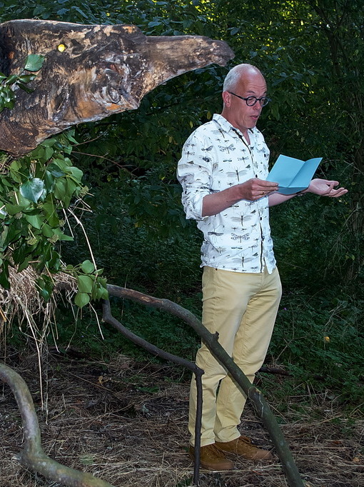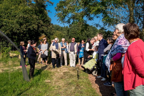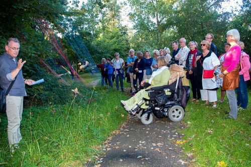 Afgelopen zomer lieten zes dichters uit Leiden en Leiderdorp zich inspireren door de kunstwerken in de Heemtuin. Tijdens een rondwandeling door de Heemtuin presenteerden Wilco van der Kamp, Joke Schrijvers, Frans Terken, Erika de Stercke, Mieke van den Berg en Egon Snelders voor een grote groep toehoorders de gedichten die zij hebben gemaakt. Projectleider Aris de Bakker gaf daarna een toelichting op de achtergronden en andere wetenswaardigheden van de kunstwerken. Veel lof hier van de aanwezigen, voor wie de poëzie nog een extra dimensie toevoegde aan de beelden.